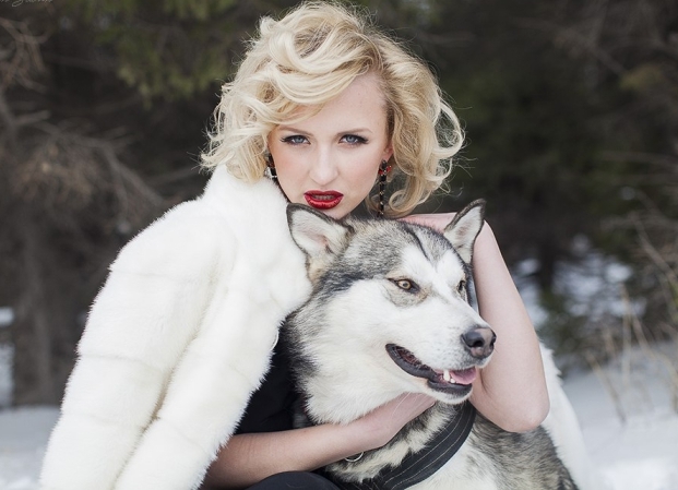 Jo kinne foto's mei in hûn op elke tiid fan it jier nimme. Yn 'e simmer kinne jo spylje yn' e wetter, yn 'e hjerst fotos spektakulêre sjogge op' e eftergrûn fan kleurere foliage, en winter is de tiid fan 'e fee, foaral it byld fan in moaie famke mei in hûn yn in foto-shoot op' e snie is magysk.